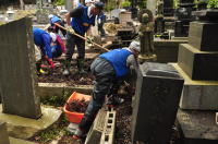 活動内容は 鮎川地区のお墓の修復・お寺の裏山の竹林伐採・震災ゴミ仮置き場の整備・支援物資の整理等々を分散しての活動をこなしました。